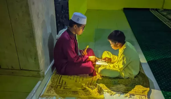 Anak yang duduk di kelas tiga SD itu kini sudah iqra 2. Ditemani cahaya senter di tengah Ngoyo yang temaram, dengan kesungguhan Lipi membaca baris demi baris huruf di iqranya, berusaha agar bacaannya terdengar jelas di telinga kawan-kawannya dan Ustadz Aria.