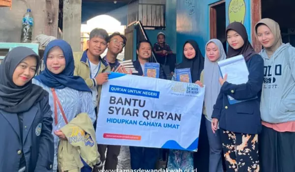 LAZNAS Dewan Dakwah - Alhamdulillah, Senin (28/7), dalam rangka program Syiar Al-Qur’an, Hidupkan Cahaya Umat, Laznas Dewan Dakwah bersama mahasiswa KKN UMT menyalurkan bantuan mushaf Al-Qu’ran ke berbagai kampung di 8 titik lokasi di Tangerang, Banten.