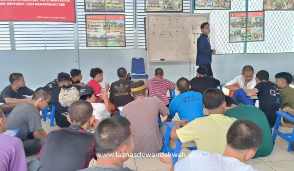 LAZNAS Dewan Dakwah - Dua kali dalam sepekan, guru ngaji, da’i muda Dewan Da’wah, Ustadz Mazwen aktif mengajar anak-anak binaannya yang masih dalam masa tahanan di LPKA Sungai Raya, Kabupaten Kubu Raya, Kalimantan Barat.